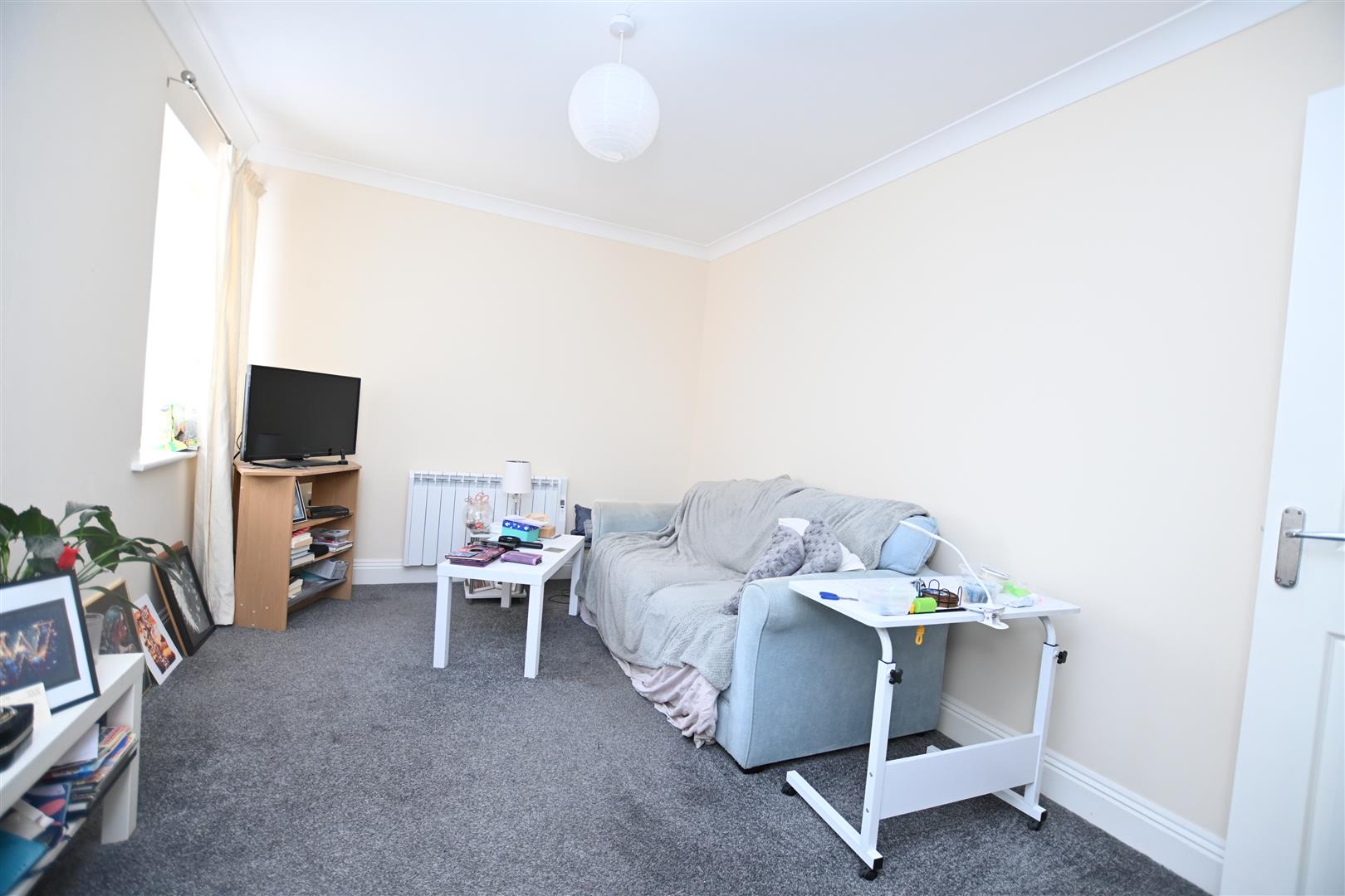 A bright and inviting reception room enjoying a neutral colour palette and a soft grey carpet, creating a warm and comfortable atmosphere. A double-glazed window to the side elevation draws in natural light, while a modern electric panel heater offers efficient warmth. There's ample room for lounge furniture, with space for a sofa, media unit, and additional occasional tables. Ideal for relaxing or entertaining, this space combines practicality with a homely charm